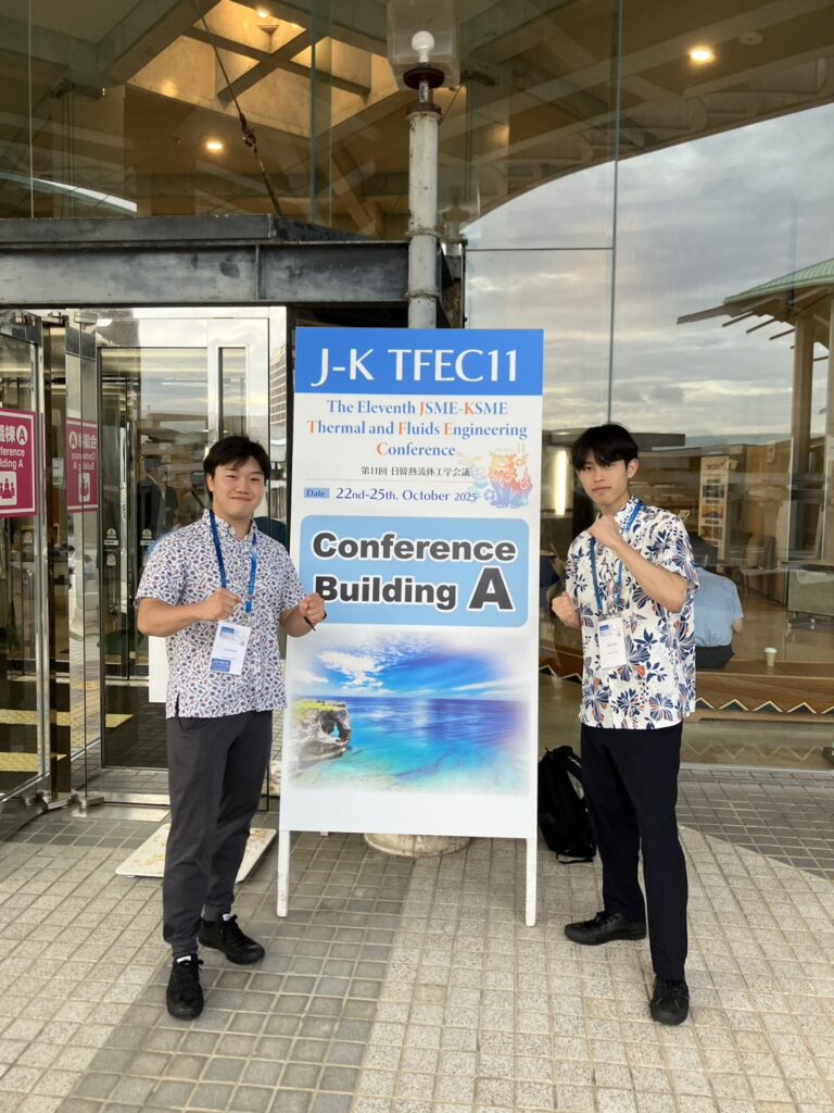 2025年10月、M1佐々木大雅とM2神谷怜男が沖縄で行われた第11回日韓機械学会合同・熱流体工学国際会議/The Eleventh JSME-KSME Thermal and Fluids Engineering Conferenceで口頭発表を行いました。