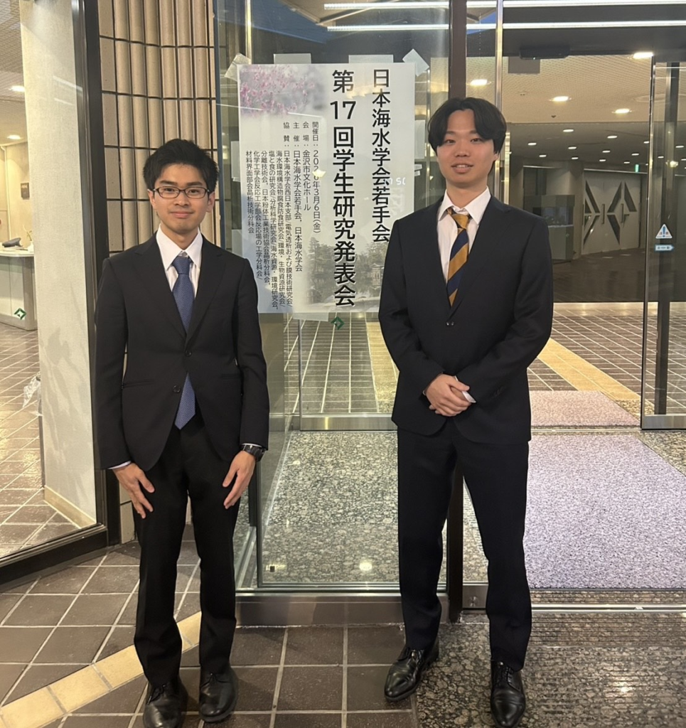 2026年3月、金沢市で開催された日本海水学会若手会 第17回学生研究発表会にてB4向田、B4森田が発表を行いました。